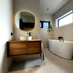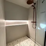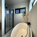 Die Badezimmer in der Unterkunft in Lillesand sind mit einer Badewanne, einer begehbaren Dusche und einer getrennten Toilette ausgestattet. Es werden auch ein Wäschetrockner angeboten.
