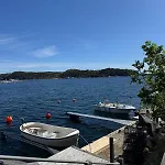 Die 2-Zimmer- Villa Parkveien Lillesand verfügt über ein privater Autoparkplatz und eine Terrasse mit Aussicht aufs Meer.